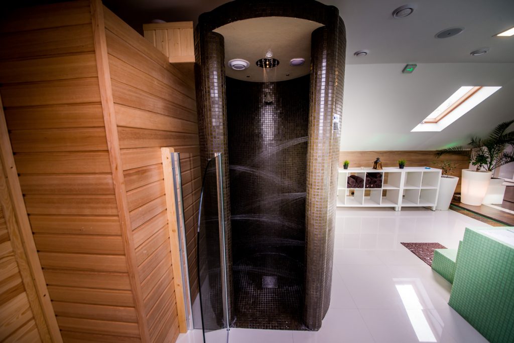 Experienta este inedita sub cele 7 capete de dus suspendate care pulverizeaza pe corp o ploaie de apa calda, in timp ce un terapeut efectueaza un masaj energizant.
