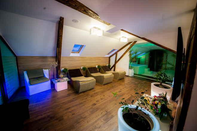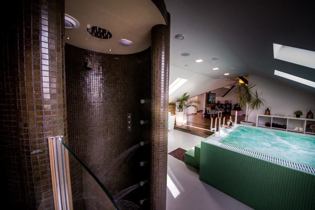 Cada cu hidromasaj este dotata cu sisteme de igienizare si filtrare permanenta a apei iar temperatura este de 29˚C. In dotare se regasesc sezlongurile din mozaic, care sunt incalzite, cu ergonomie studiata pentru a va oferi o experienta unica de relaxare.